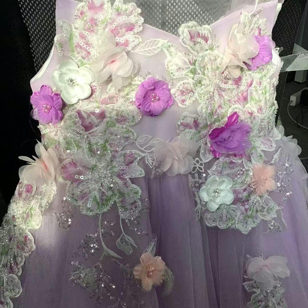 3D Flowers High Neck Pink Sequin Pleated Girls Pageant Dress
