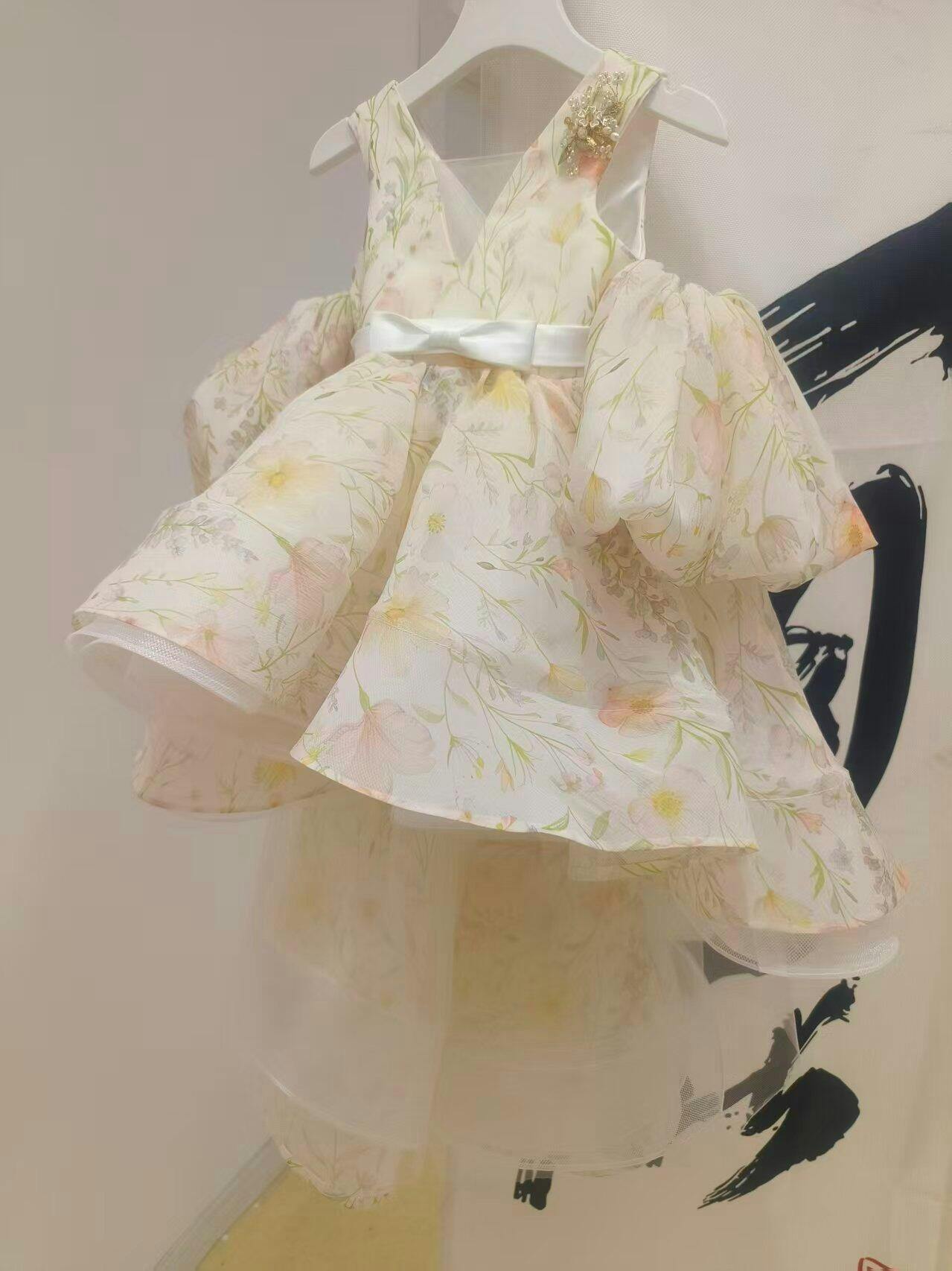 Ball-Gown/Princess V-Neck Asymmetrical Lace Flower Girl Dress