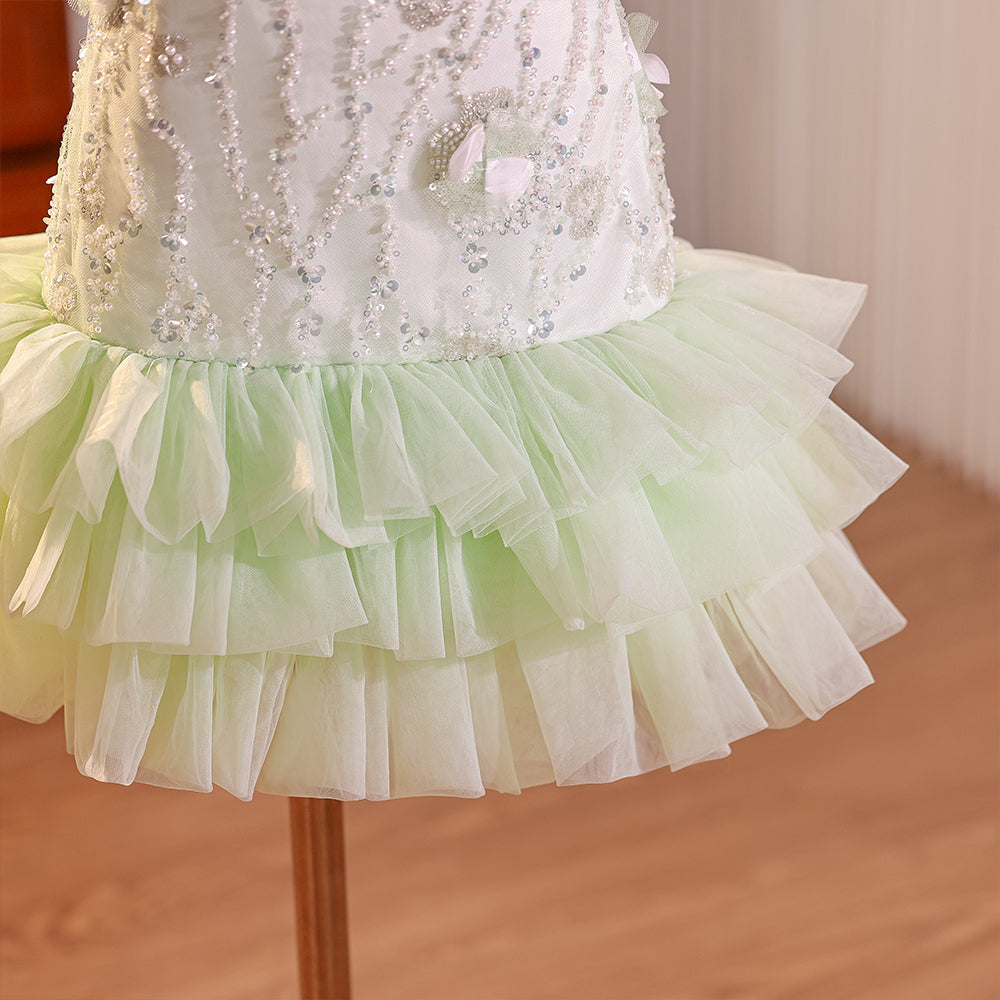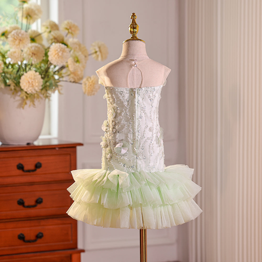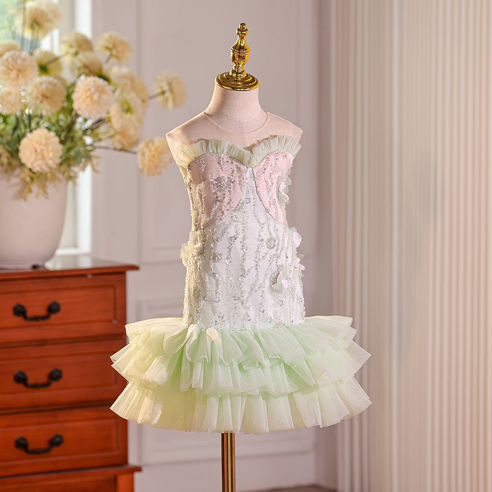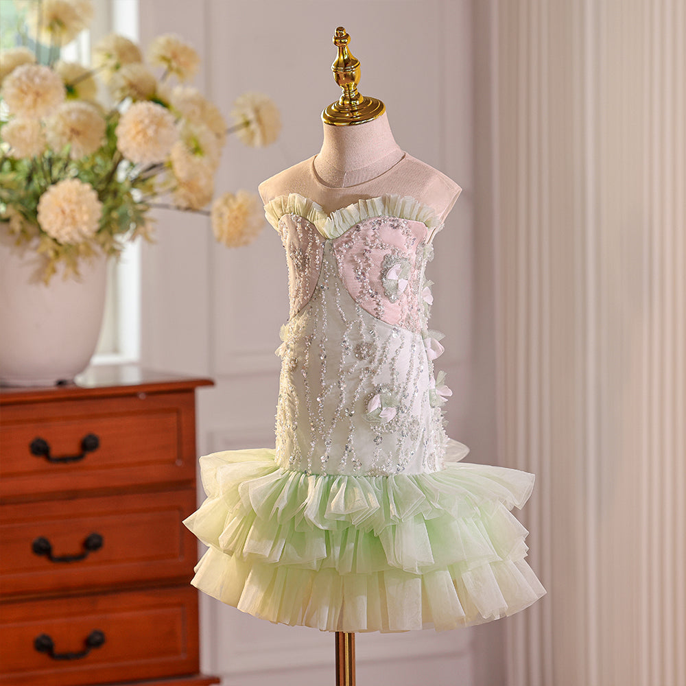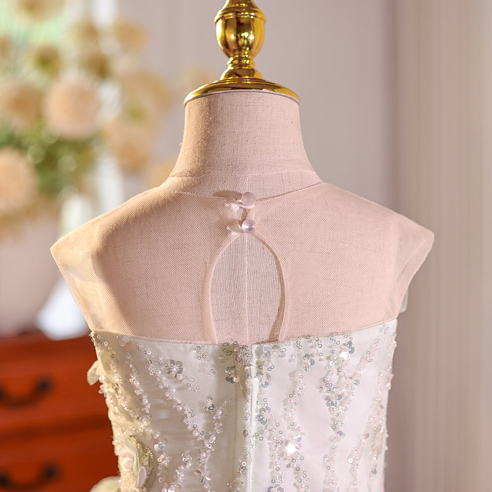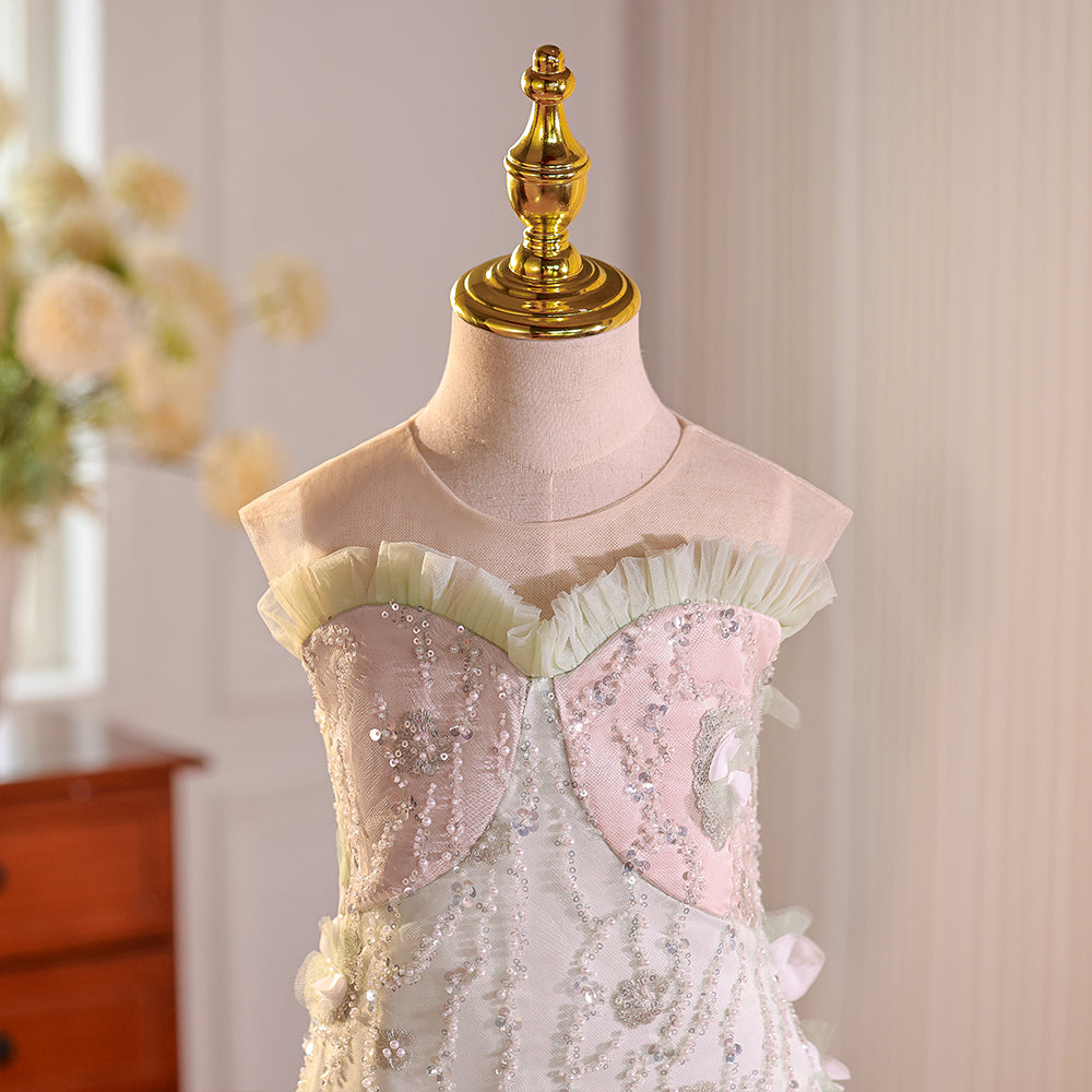 Beading Sheer Neckline Ruffle Sheath Girls Pageant Dress