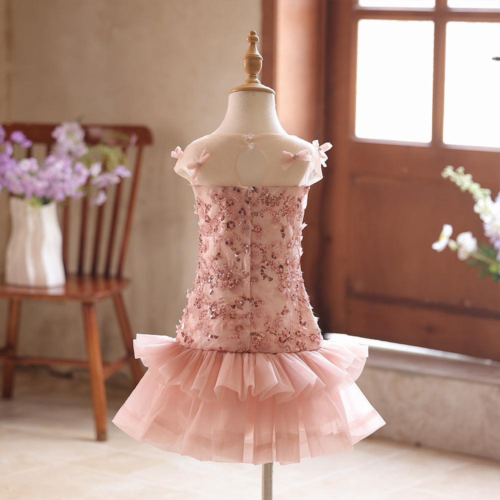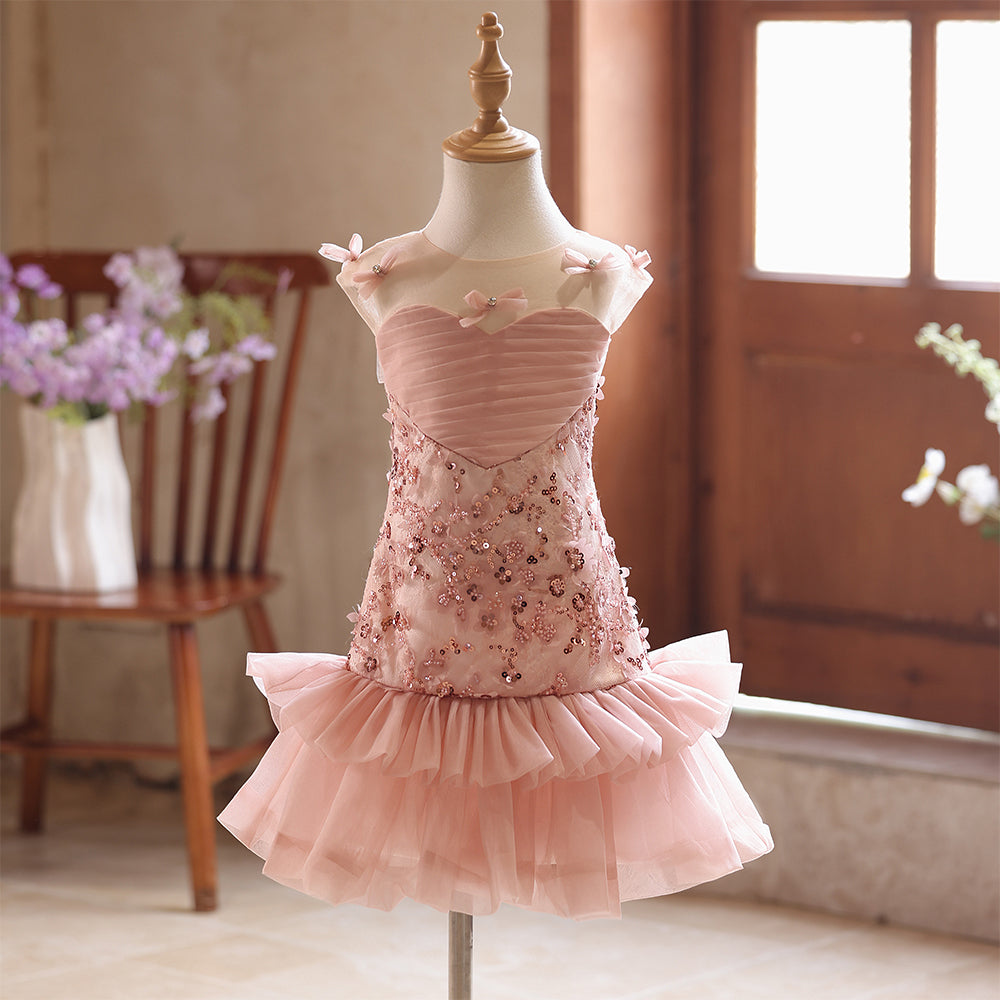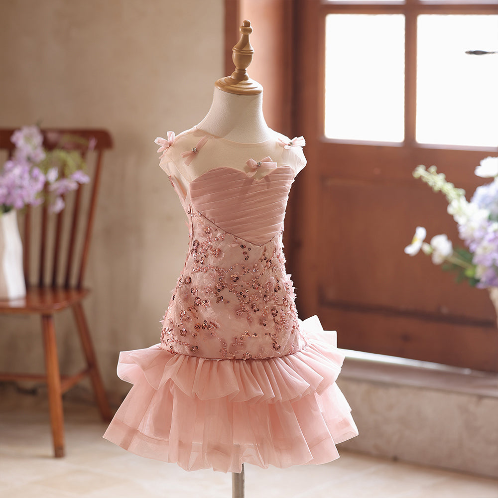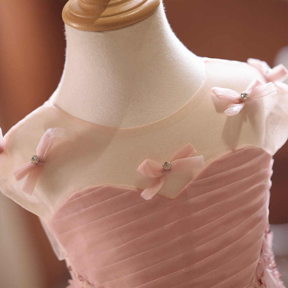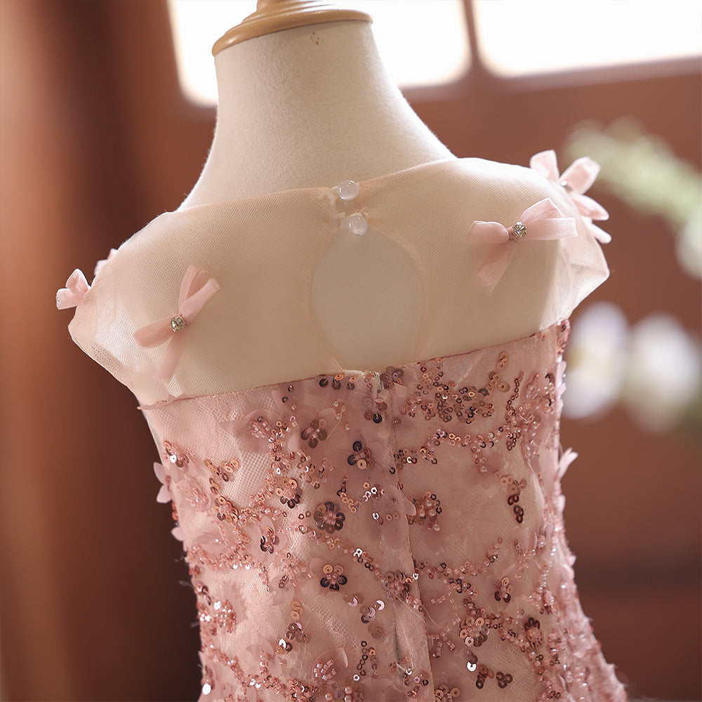 Dusty Pink Sheer Neckline Lace Beading Sheath Girls Pageant Dress