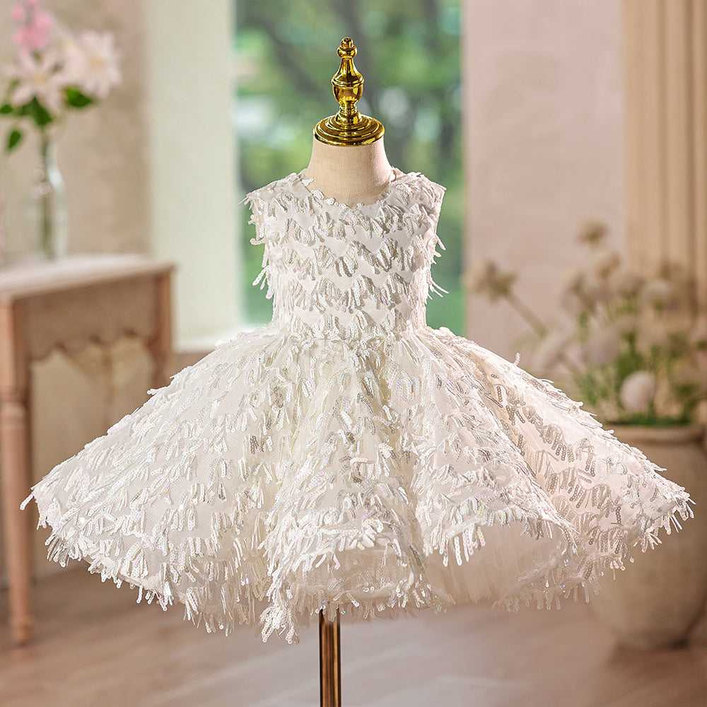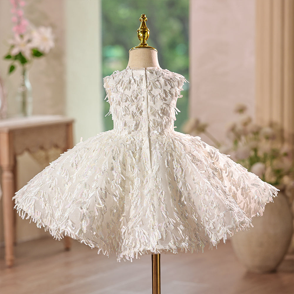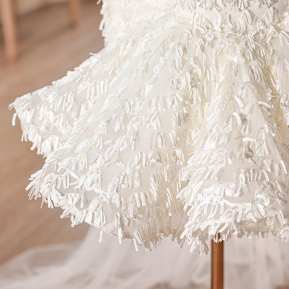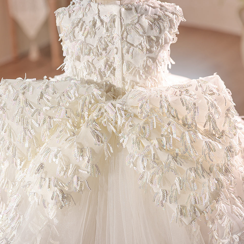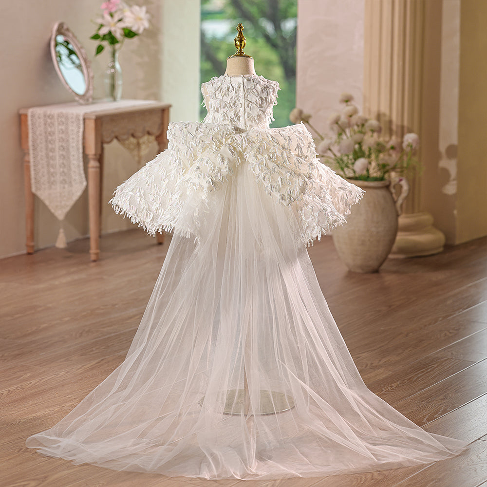 Elegant Special Lace Jewel White Girls Pageant Dress with Detachable Train