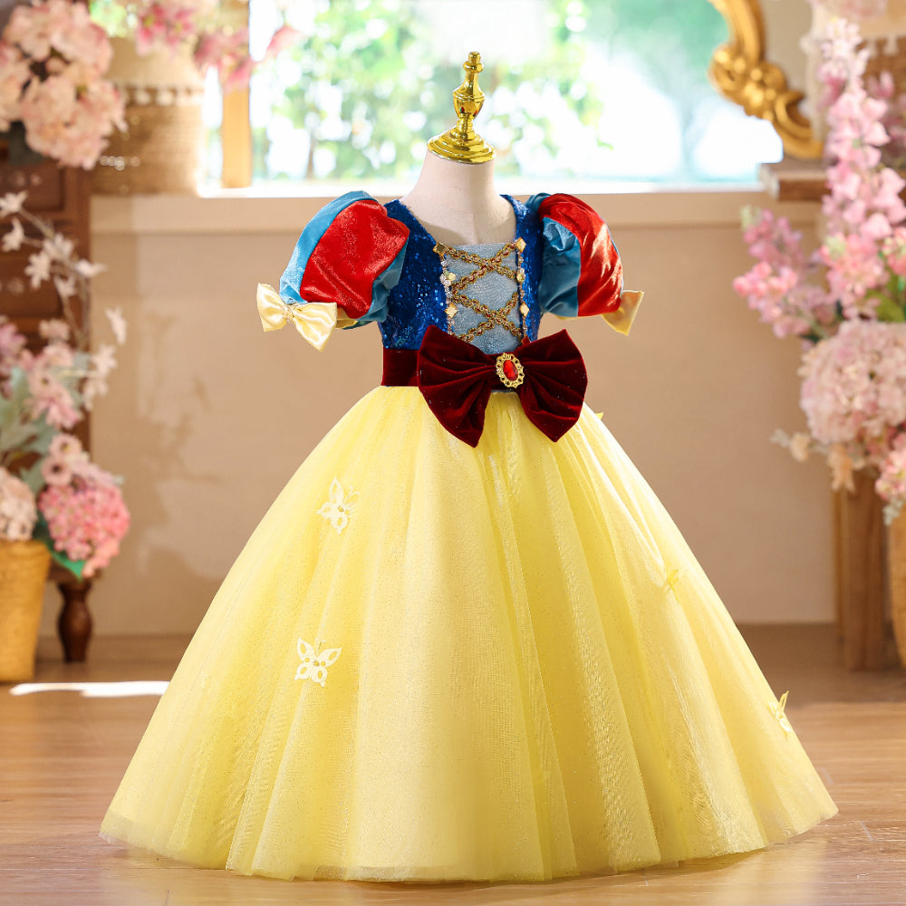Floral Tulle Butterfly Applique Girls Pageant Dress with Short Sleeves