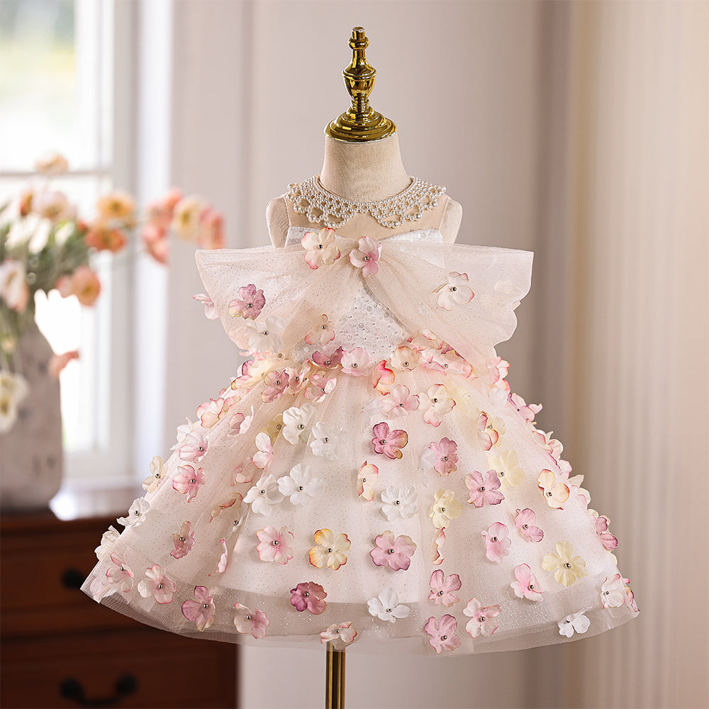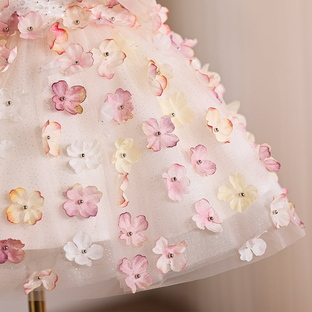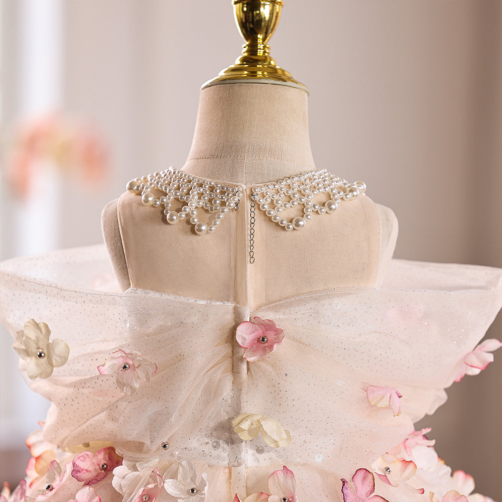 Jewel Beading 3D Flower Applique Elegant Girls Pageant Dress