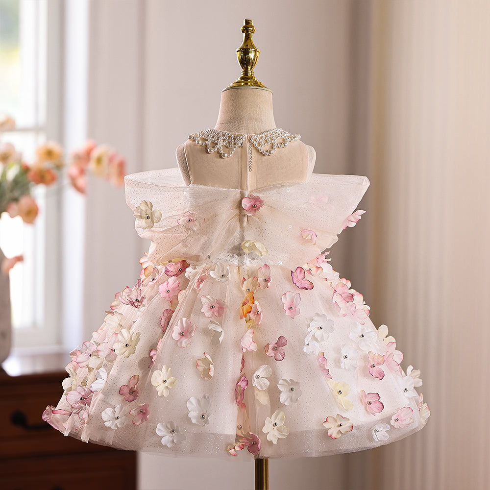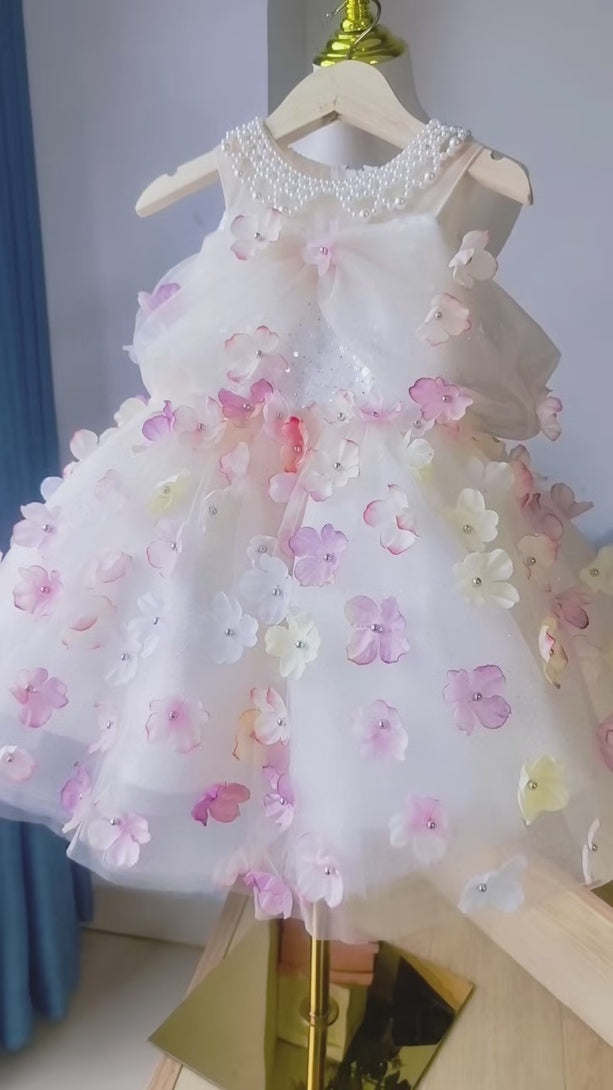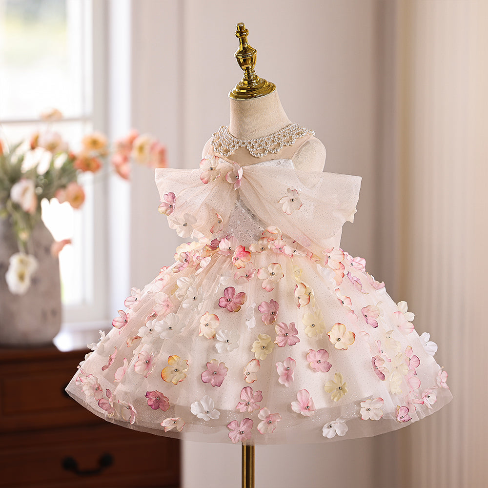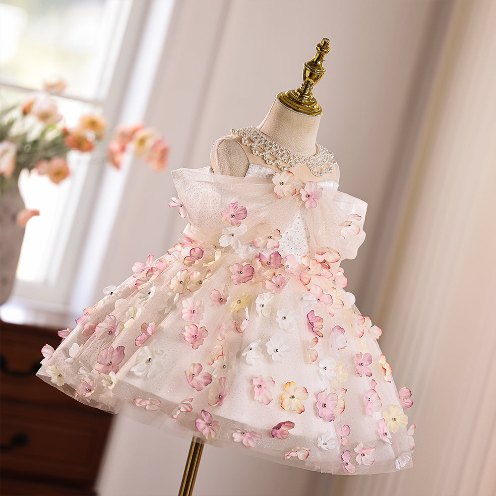 Jewel Beading 3D Flower Applique Elegant Girls Pageant Dress
