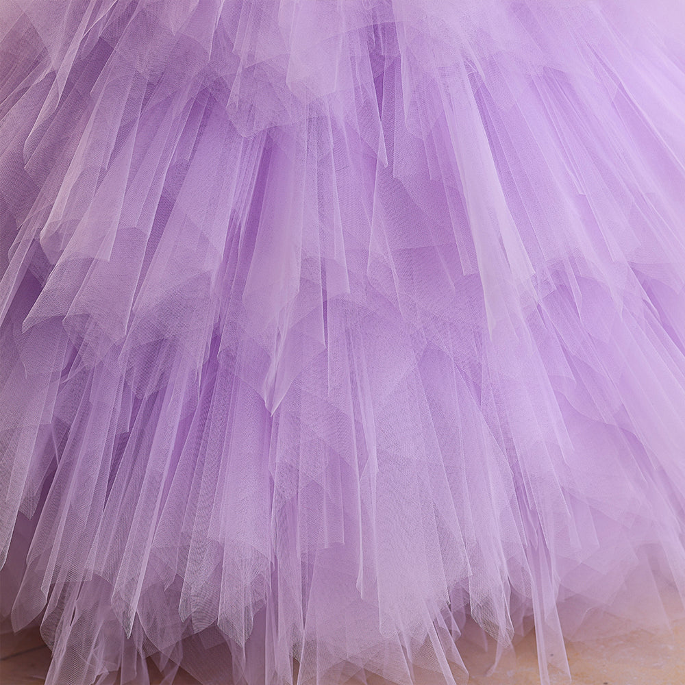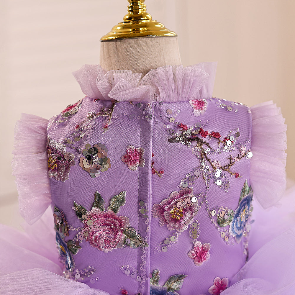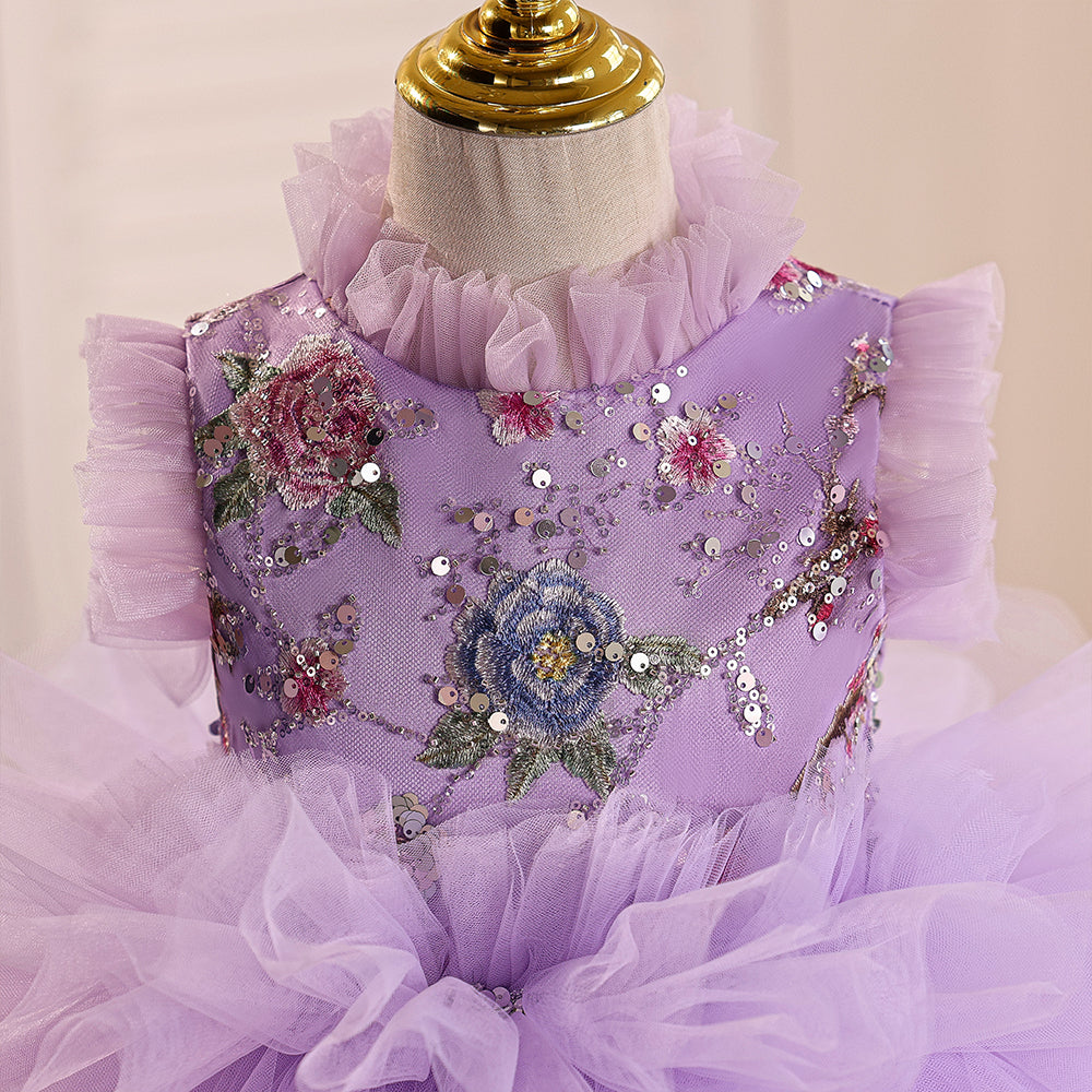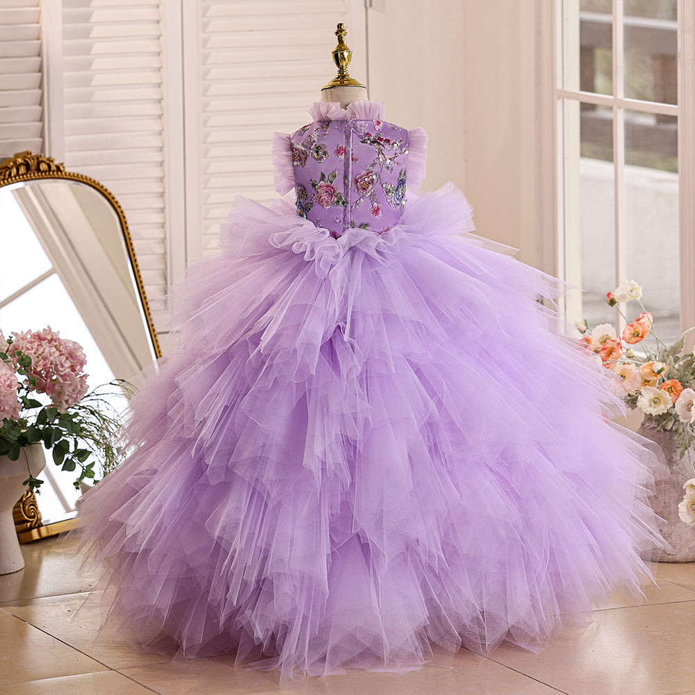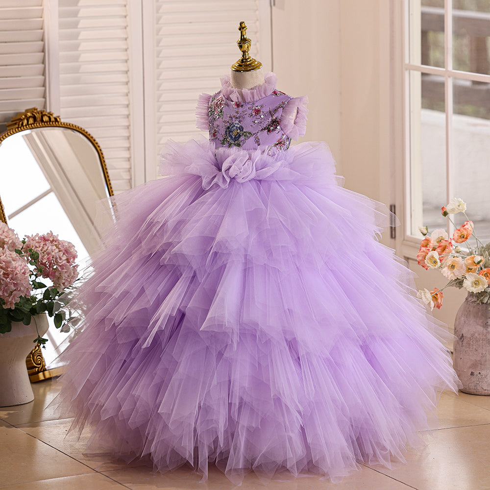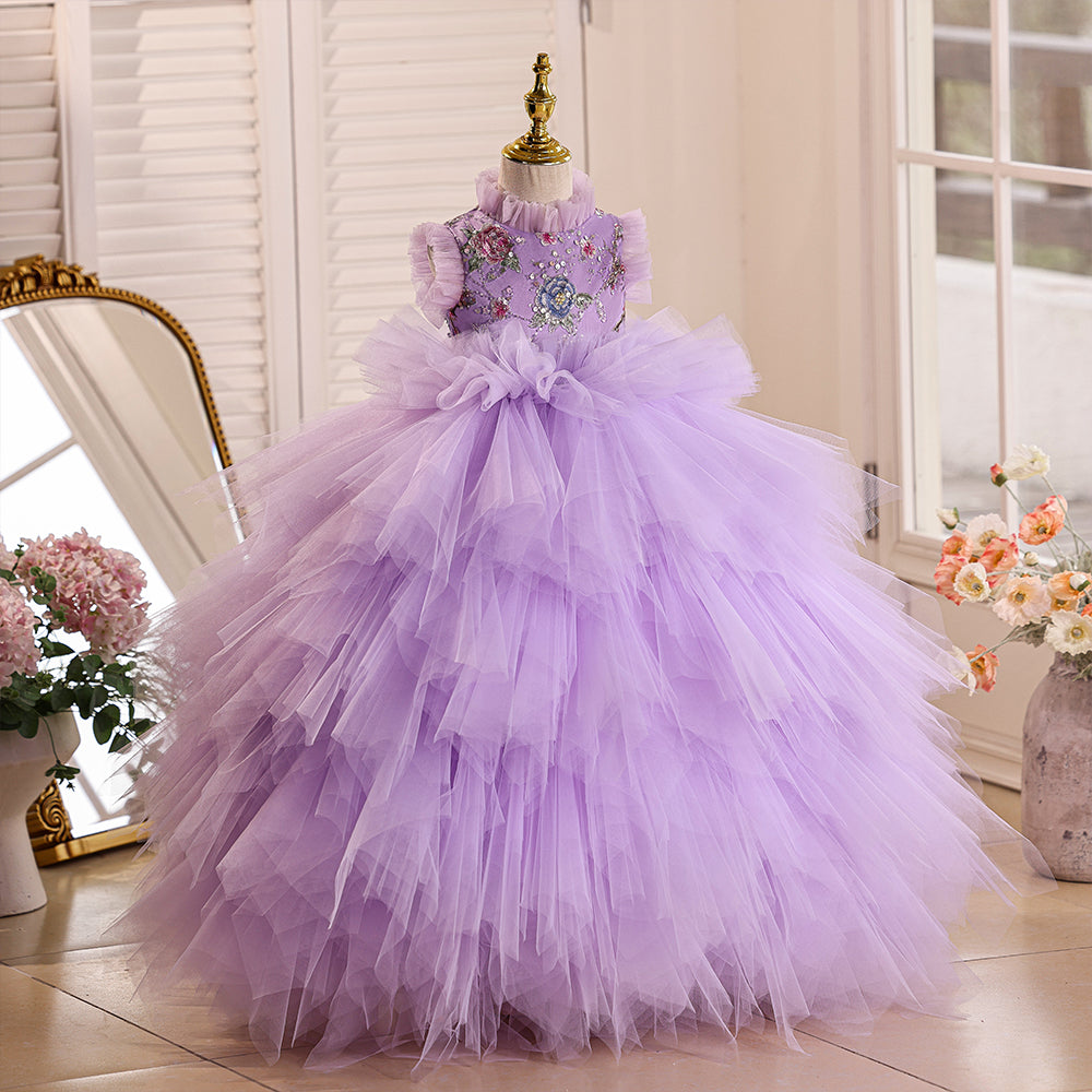 Lavender High Neck Beading Bodice Ruffle Tulle Girls Pageant Dress