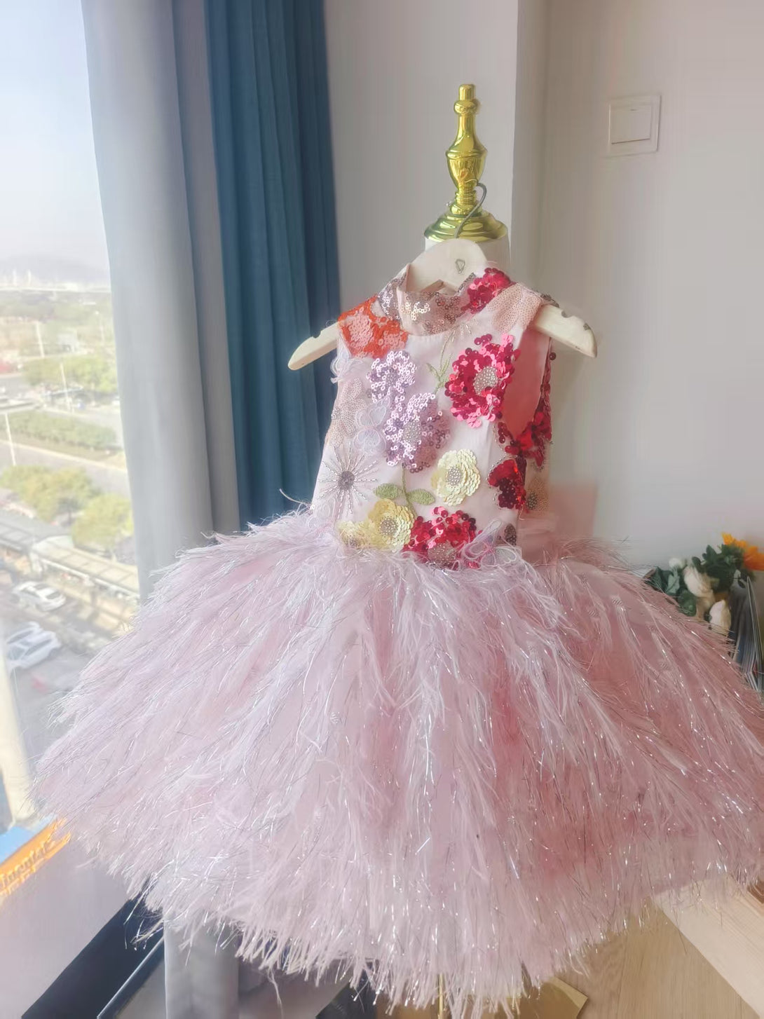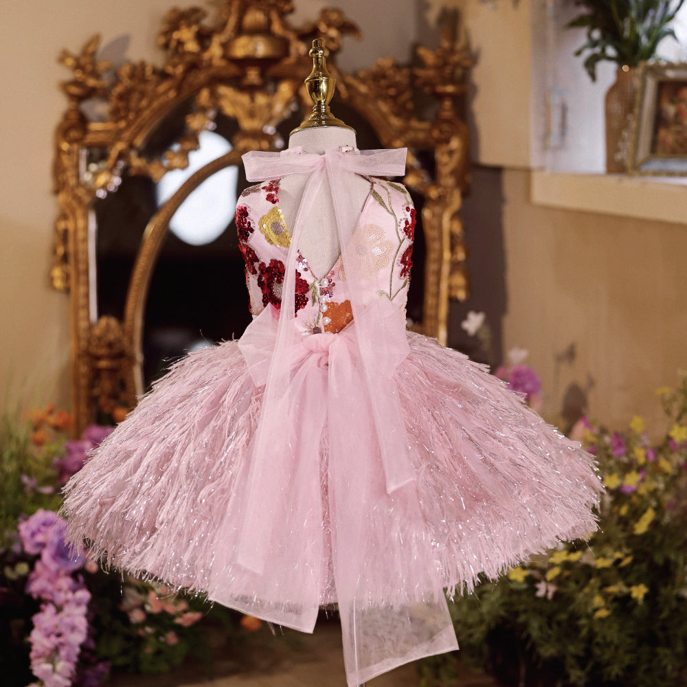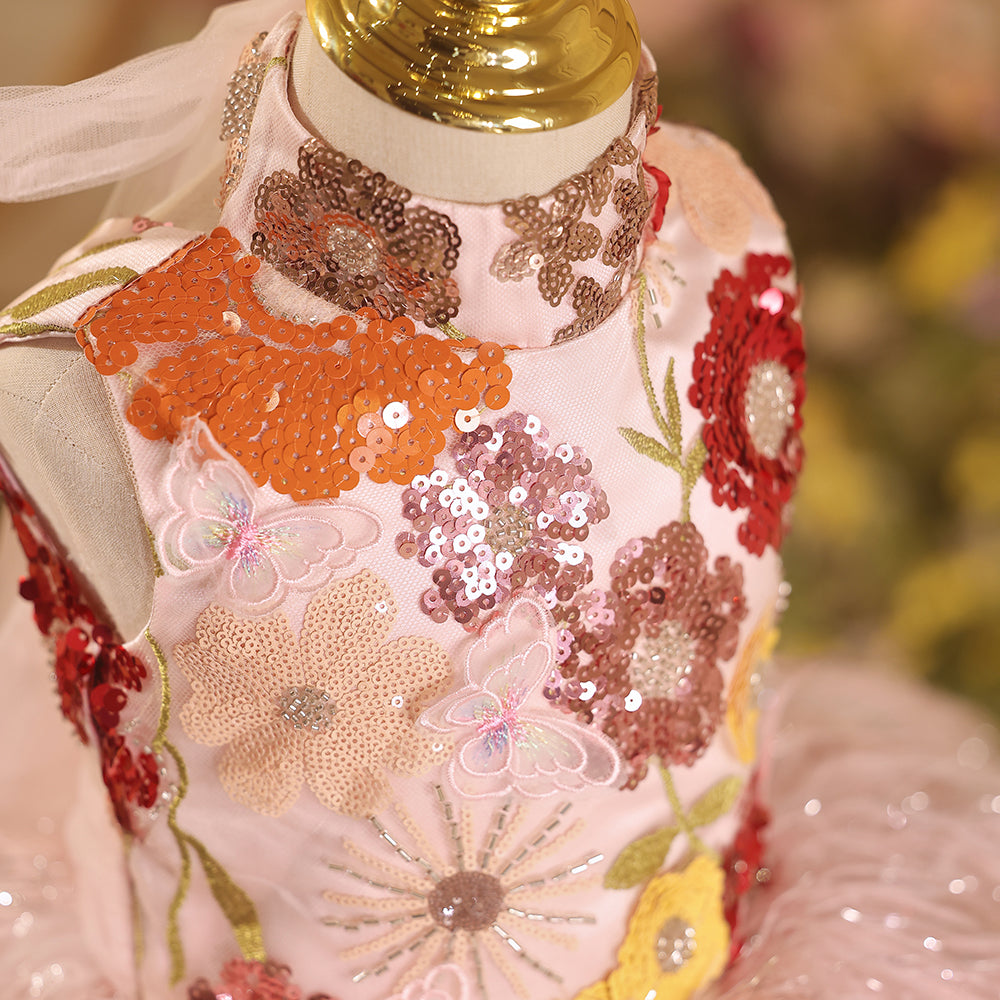Pink Knee-length Halter Sleeveless Flower Girl Dress