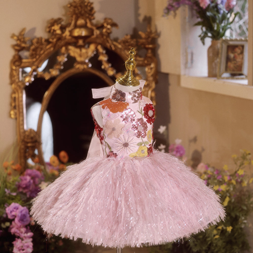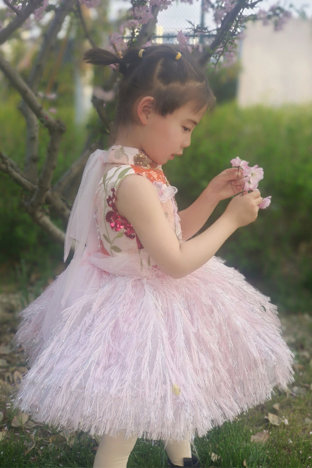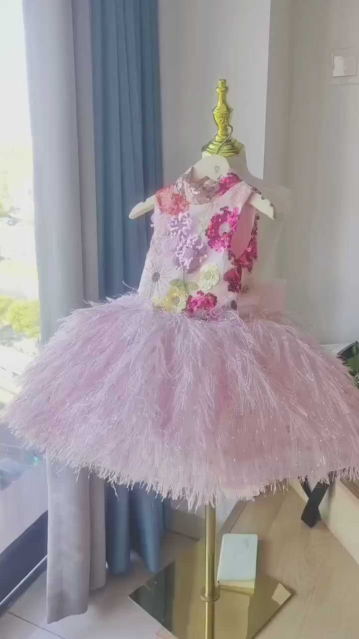 Pink Knee-length Halter Sleeveless Flower Girl Dress
