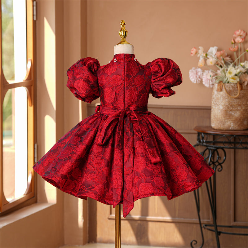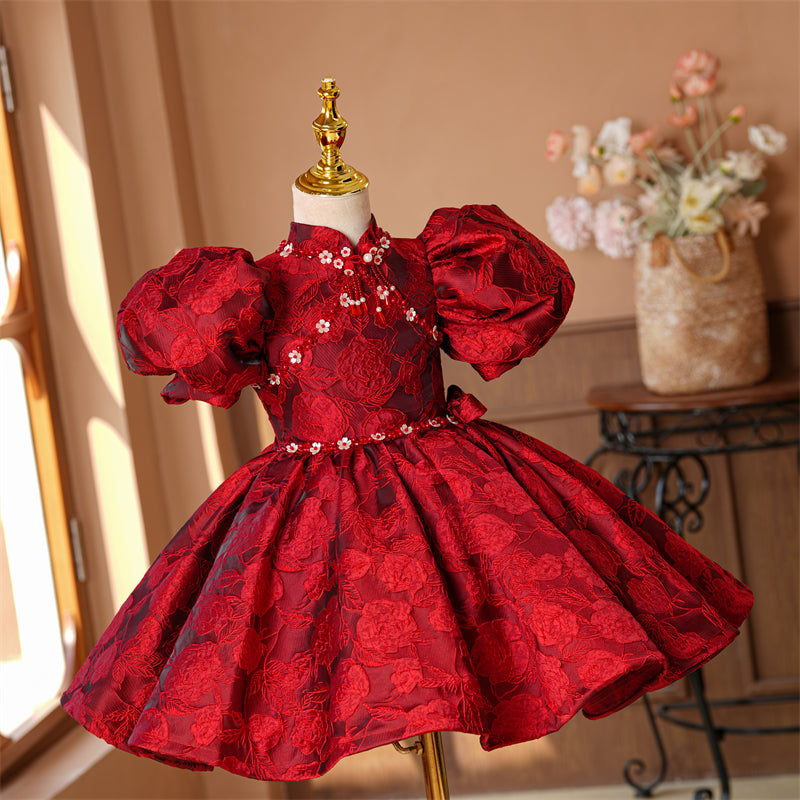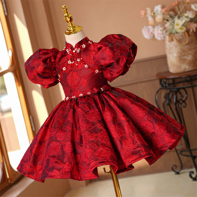 Red High Neck Beading A-line Girls New Year Birthday Dress