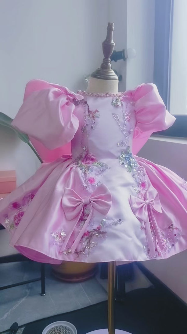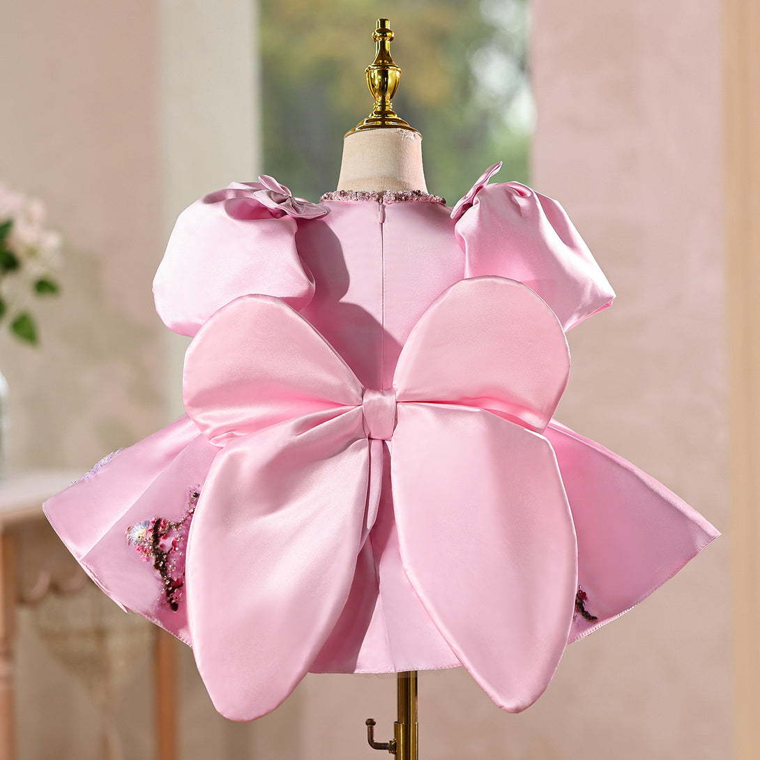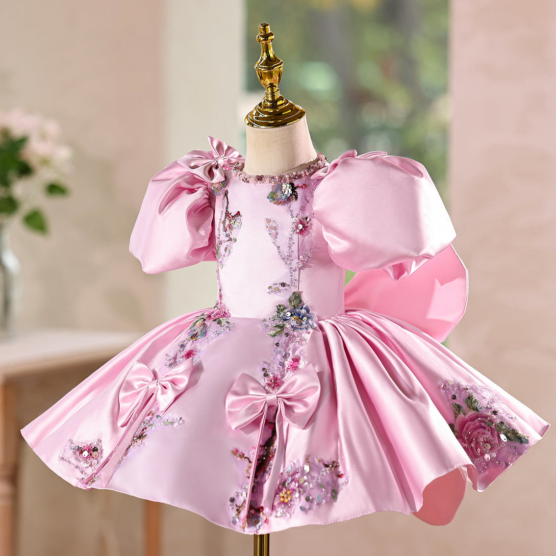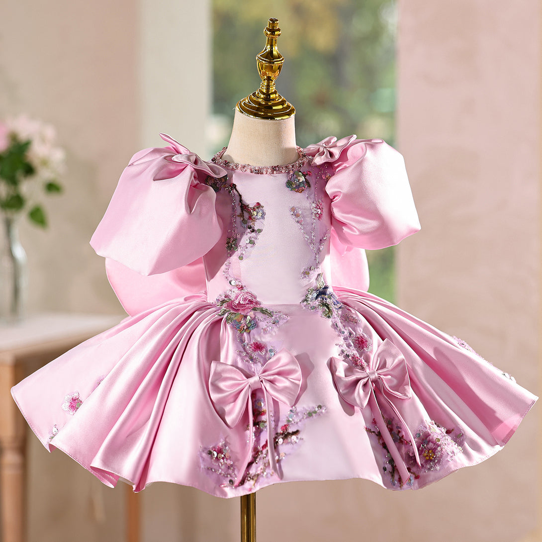 Satin Girls Pageant Dress with Sparkling Beaded Embroidery
