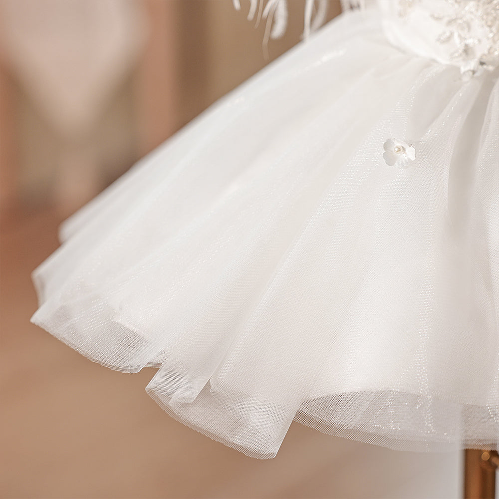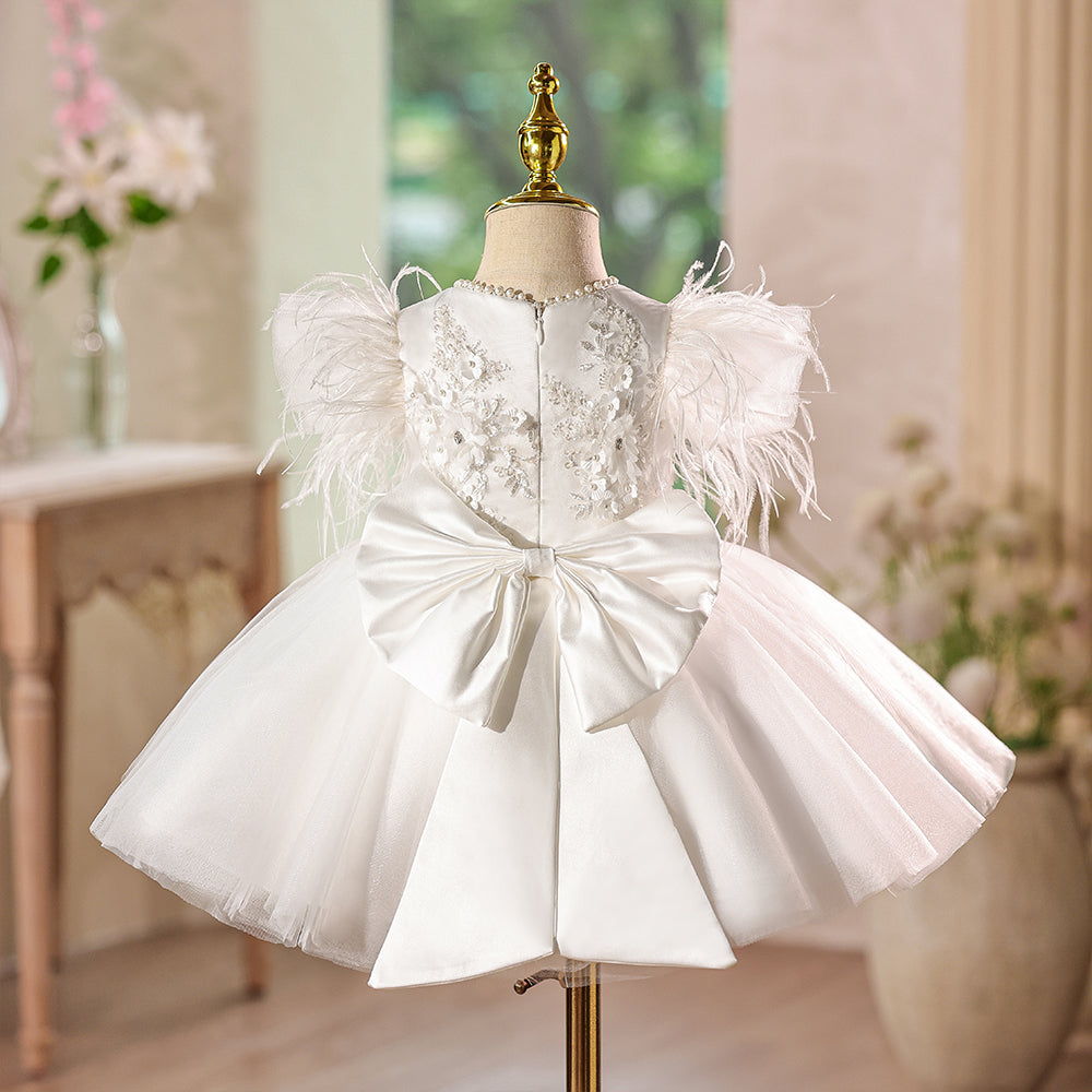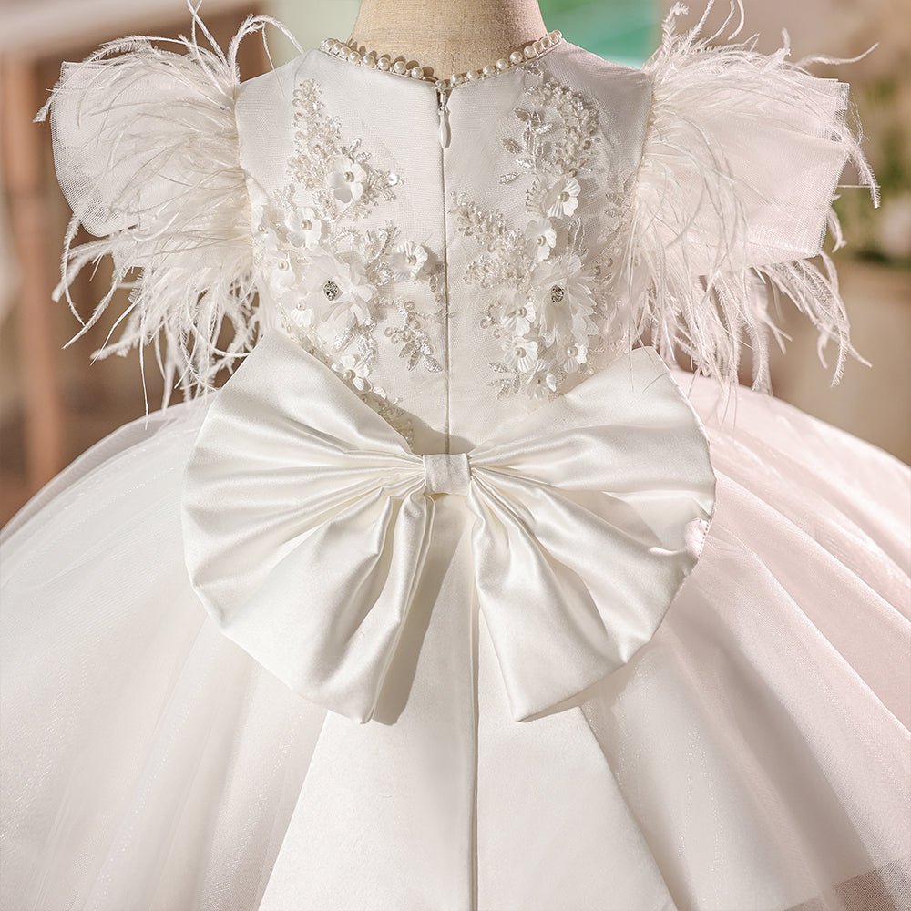 Scoop Tulle Beading Applique Flower Girl Dress with Bowknot