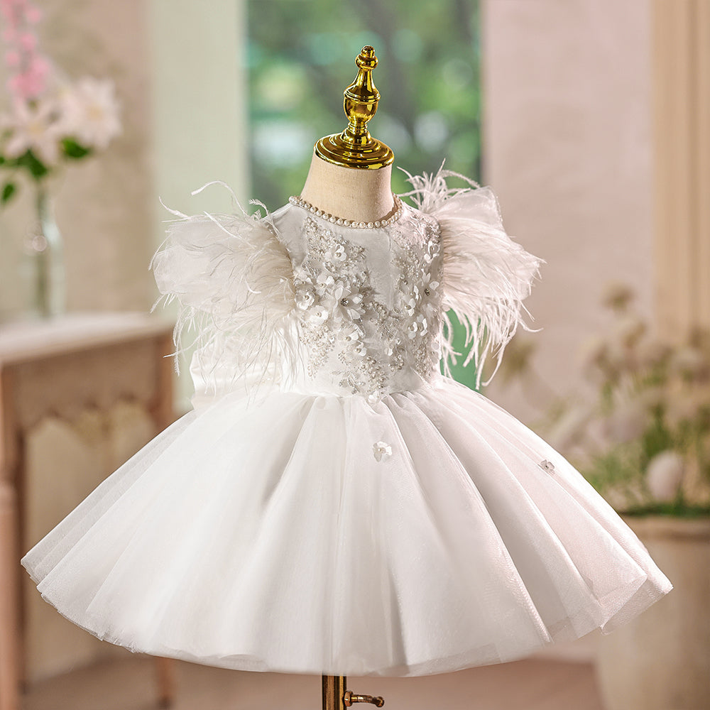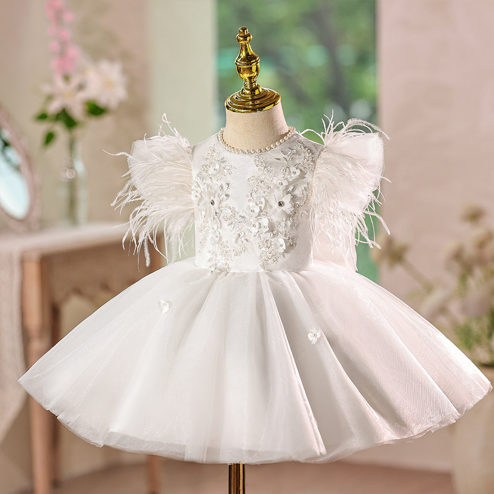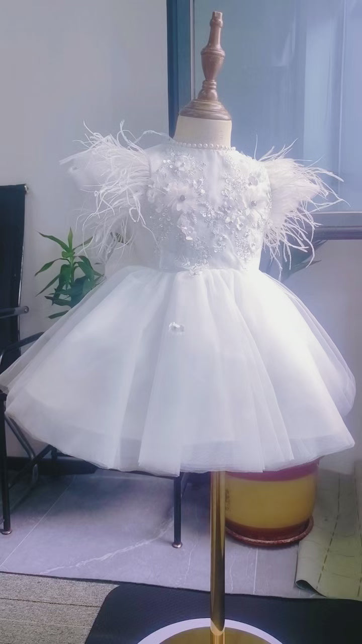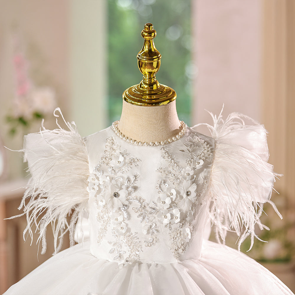 Scoop Tulle Beading Applique Flower Girl Dress with Bowknot