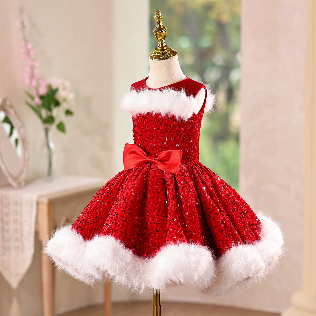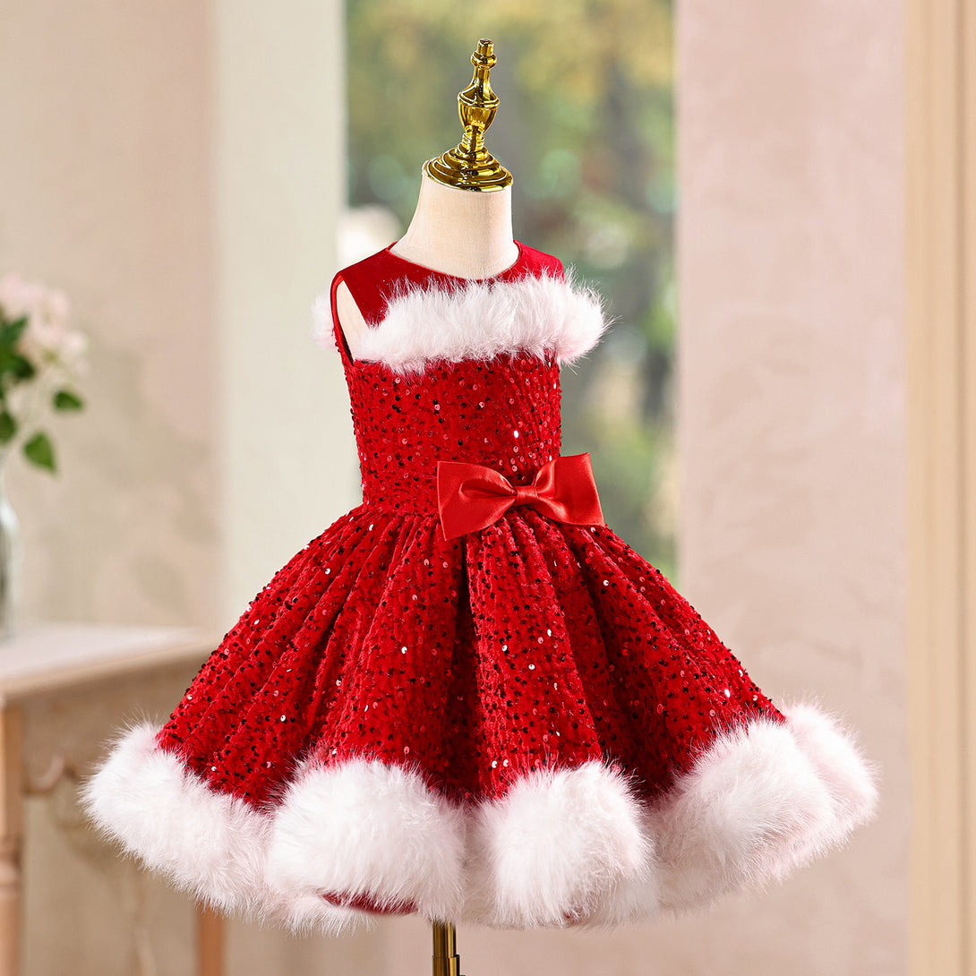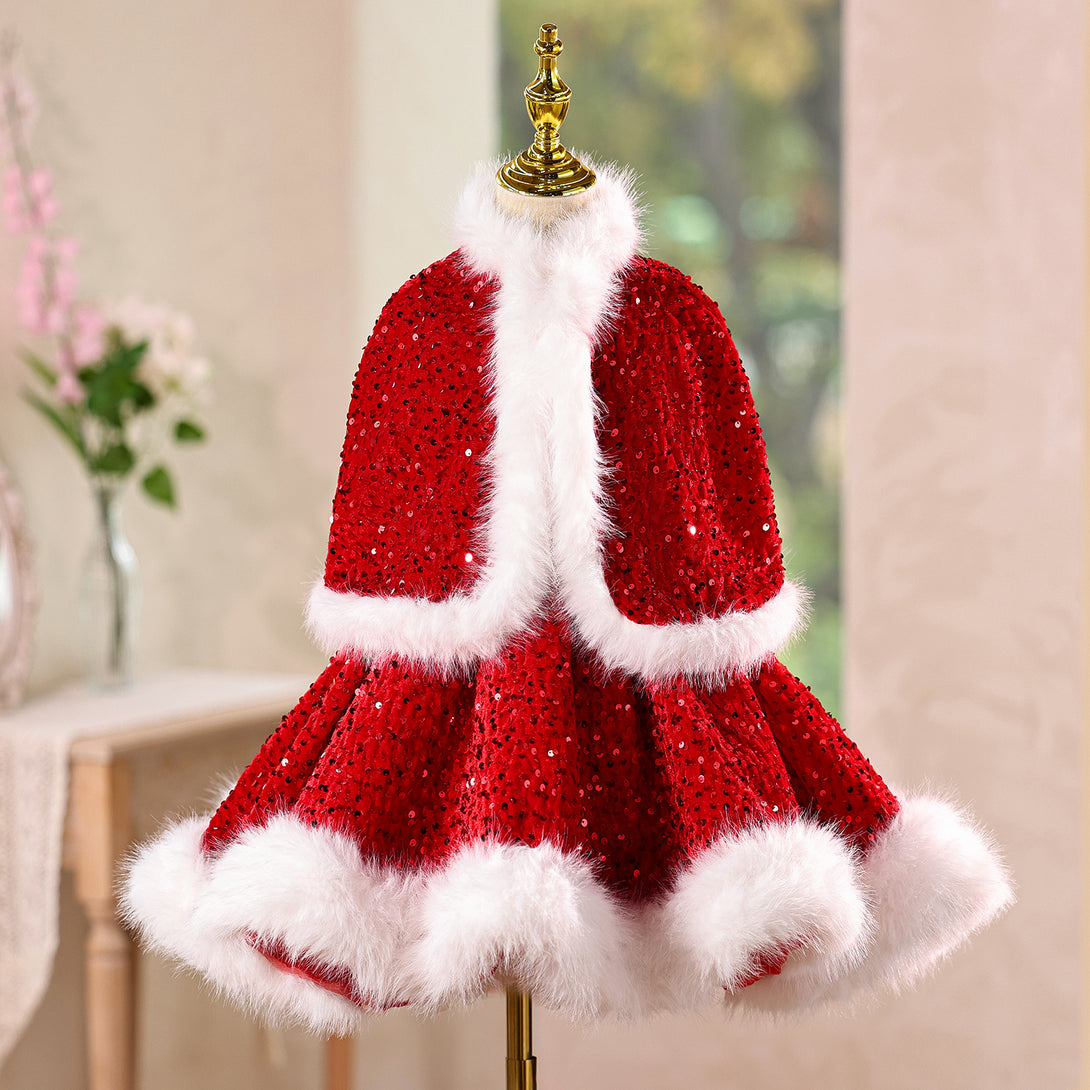 Sequin Velvet A-line Girls New Year Birthday Dress with Wraps
