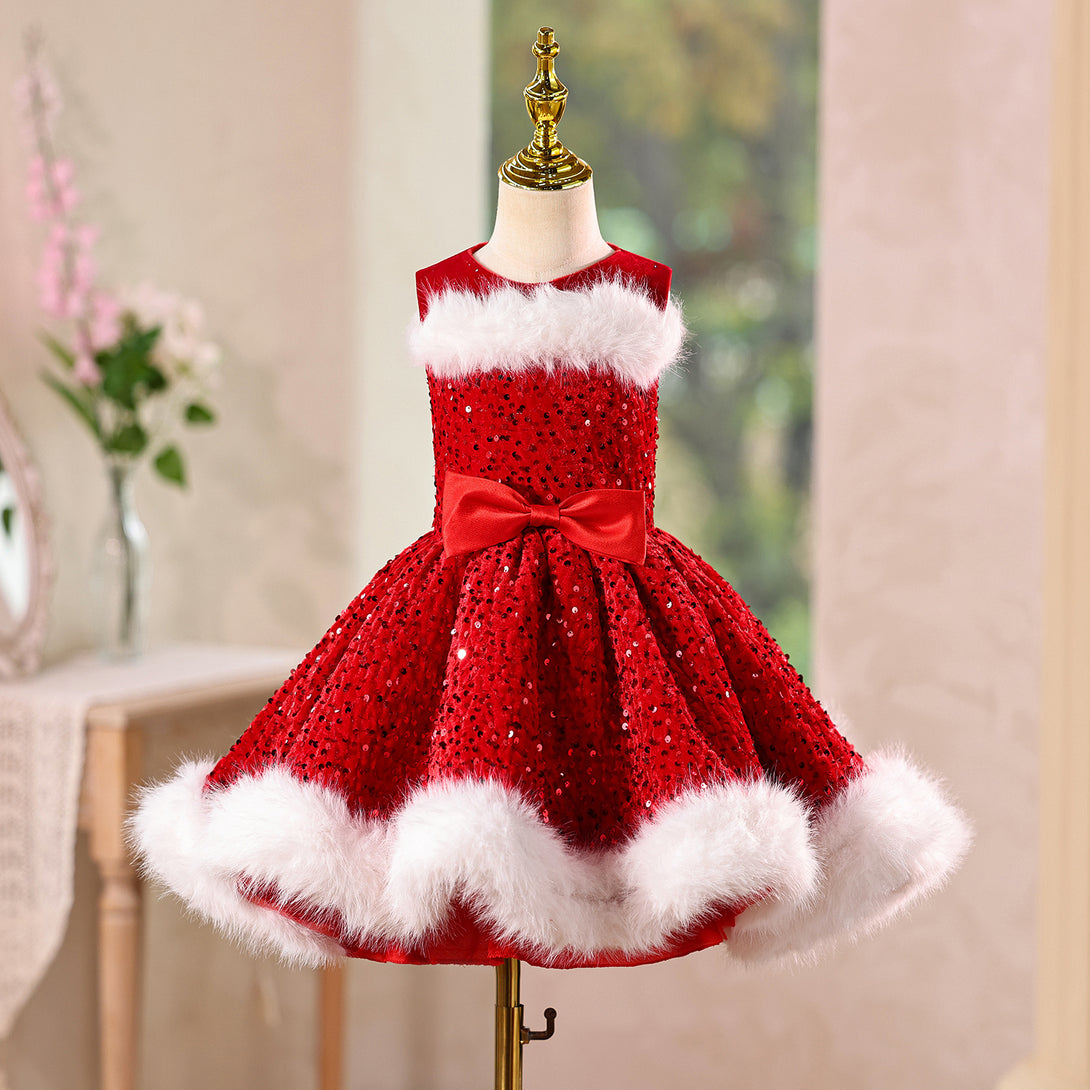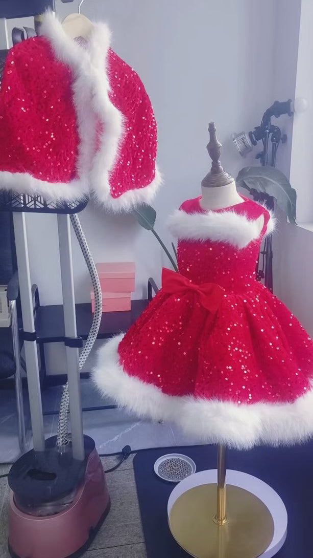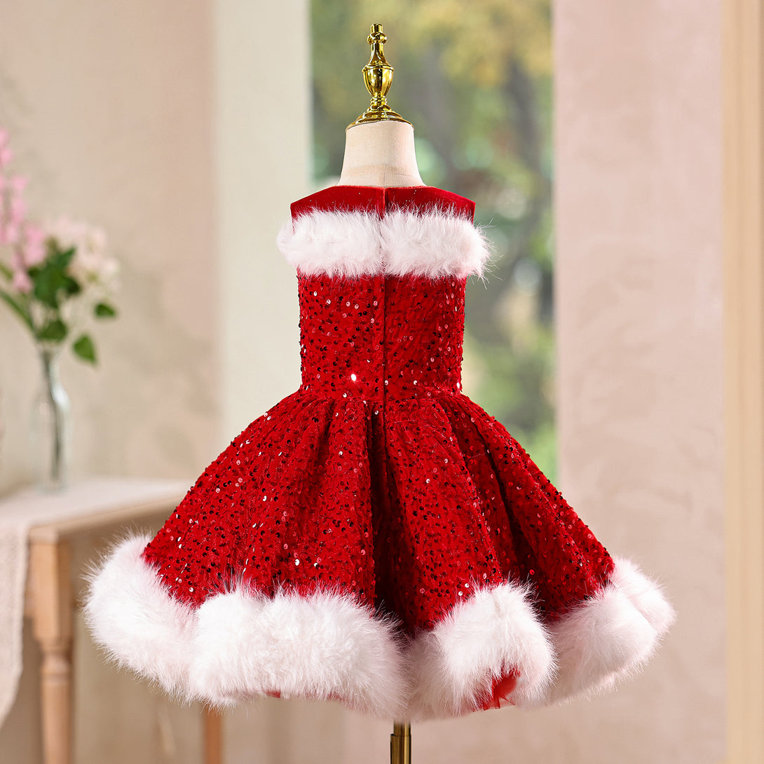 Sequin Velvet A-line Girls New Year Birthday Dress with Wraps