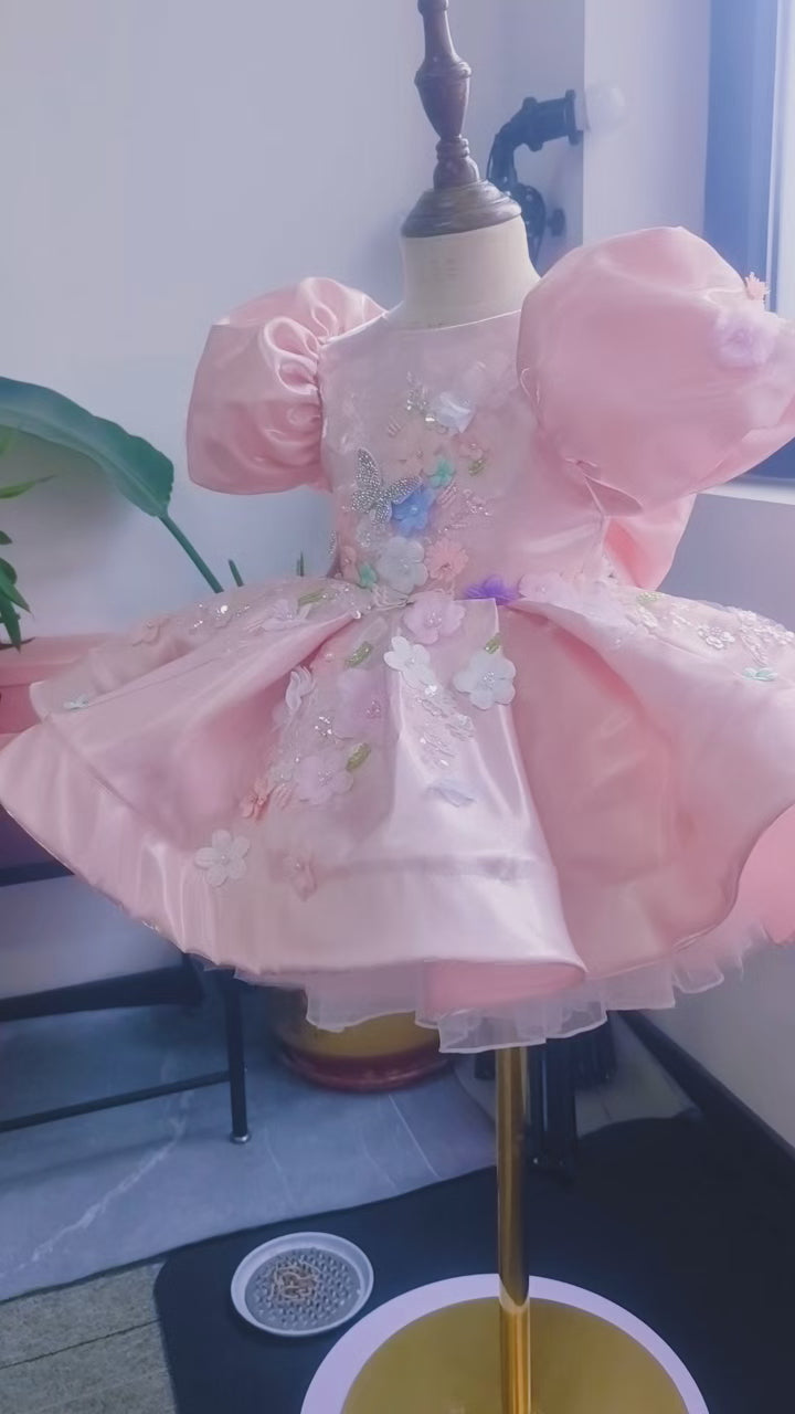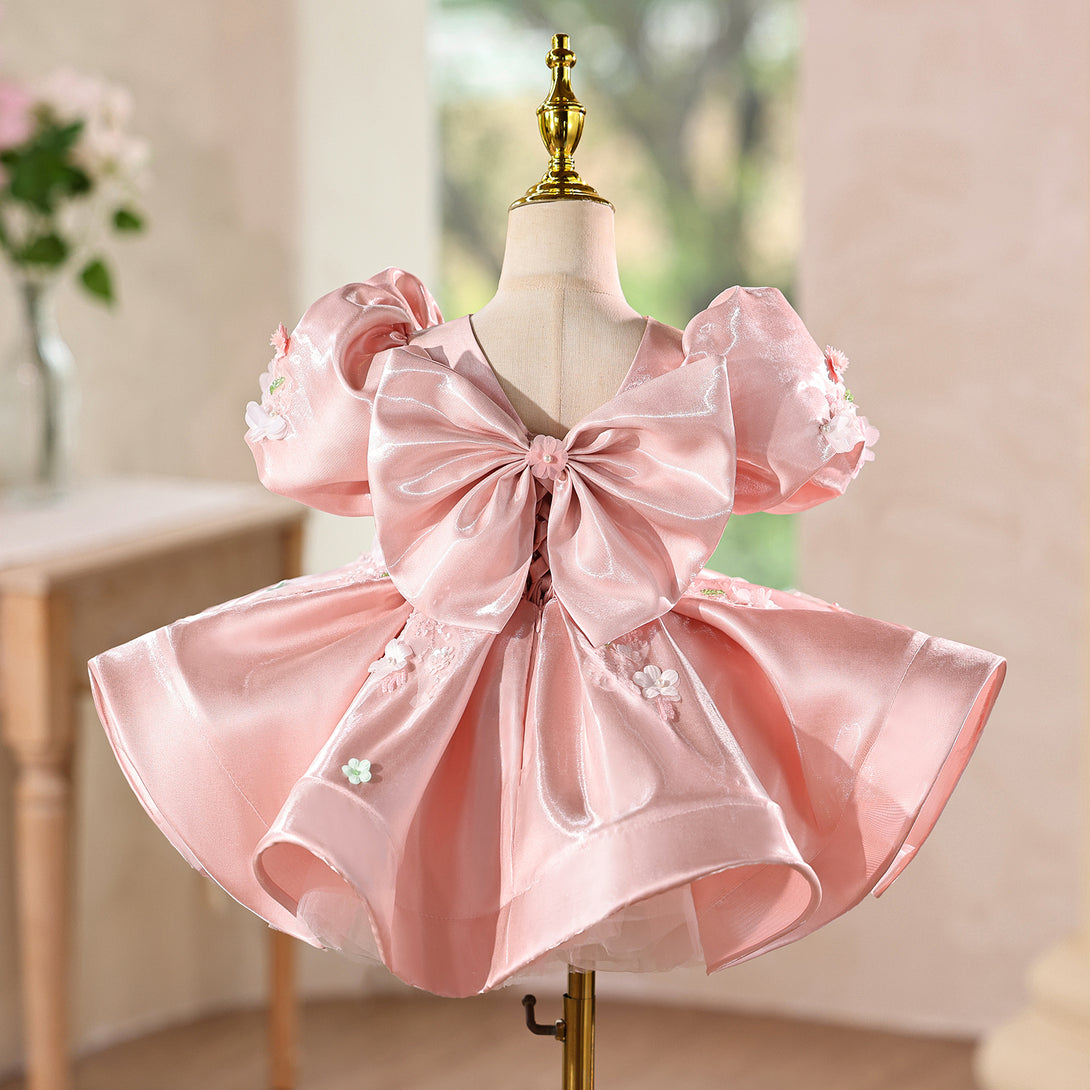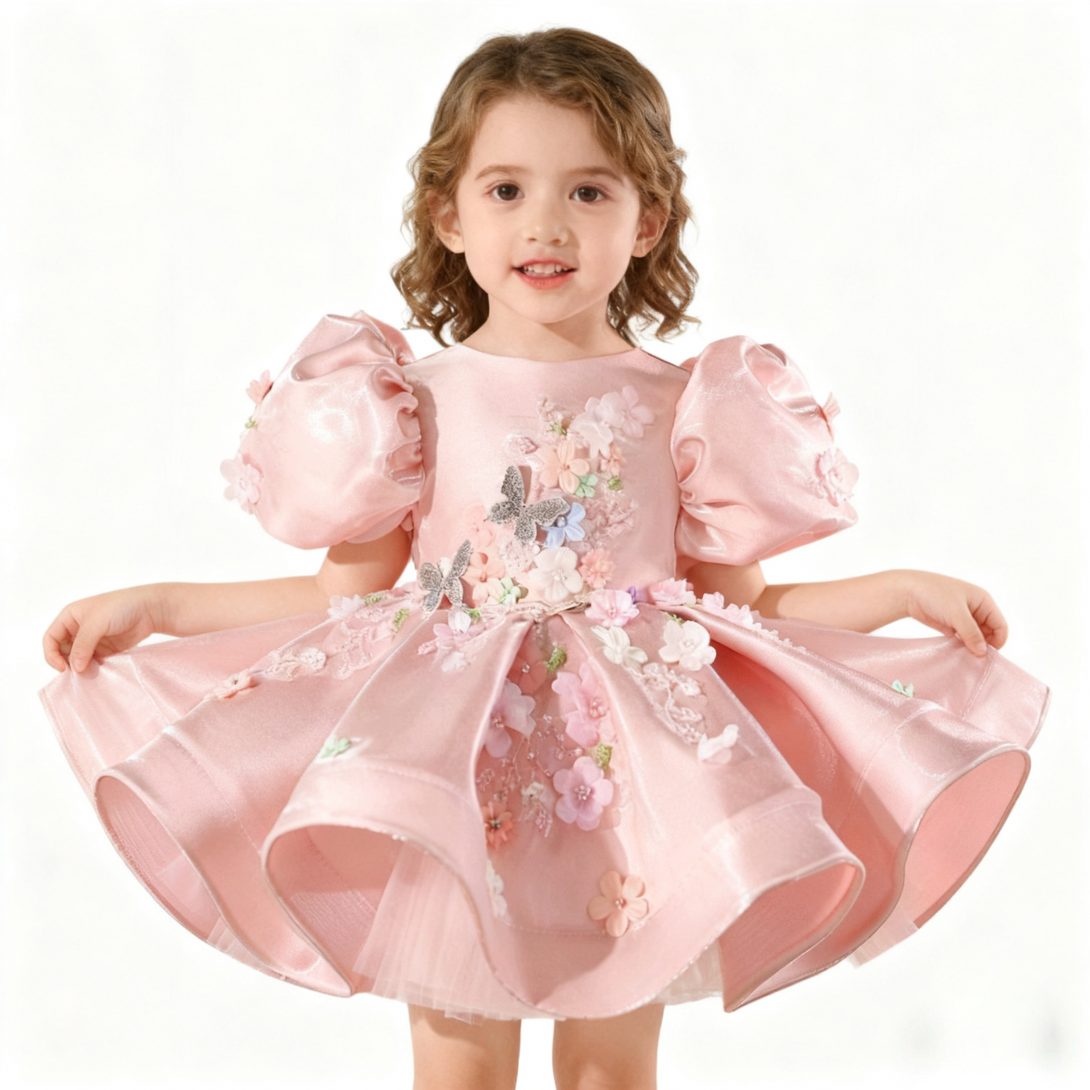 Shimmering Satin & 3D Flowers Girls Pageant Dress with Beaded Embroidery